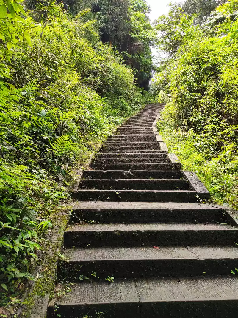 Thestone steps in the direction of Wannian Temple are very gentle