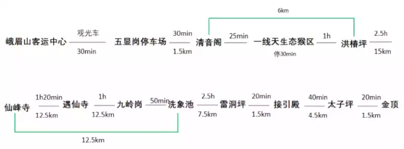 The second one: take a sightseeing bus to Wannian Temple, and then hike up the mountain, the route is relatively gentle, It is also the preferred route for most mountain pickers.