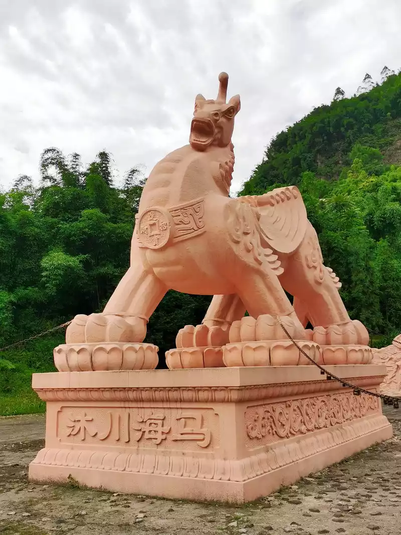 Go down the mountain to visit the Muchuan seahorse, with a head like a horse, horns like a dragon, a neck like a snake, a body like a lion, claws like a tiger, and its four feet tied to the bolted horse pillar, releasing the power of ancient artifacts to reach the sky and the sea. The sculpture symbolizes peace, auspiciousness and beauty.
