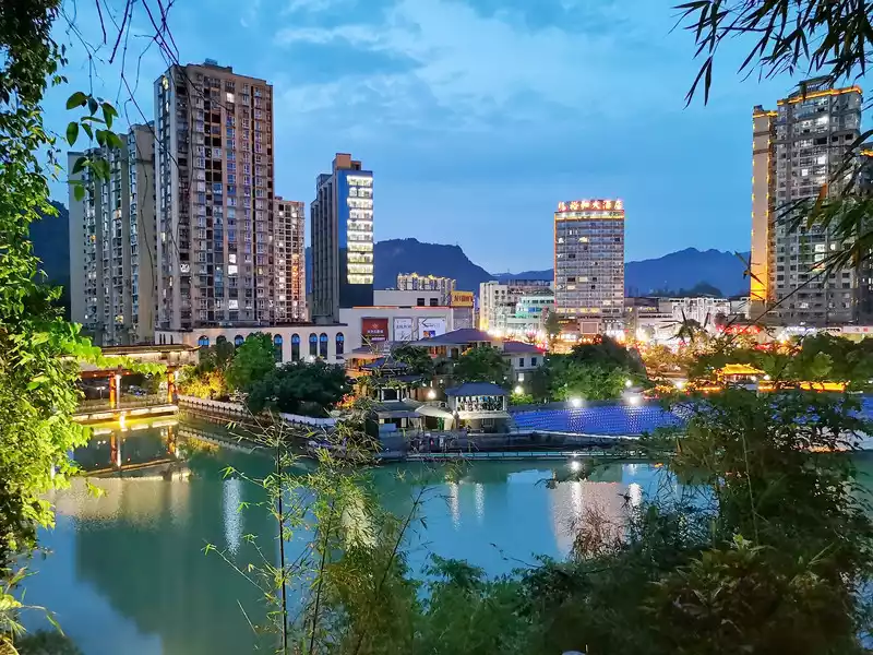 Arrive in Muchuan and visit the beautiful city scenery for the first