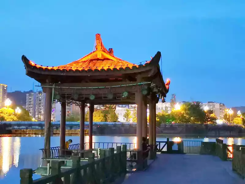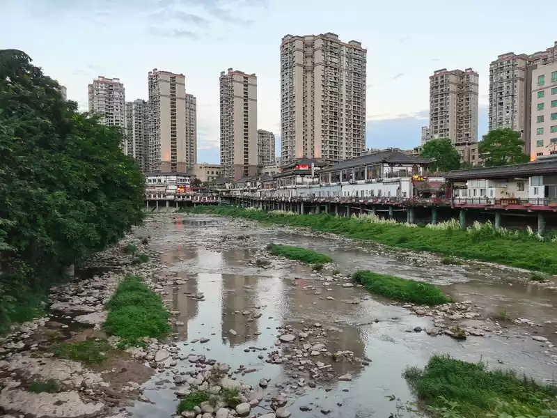 To the south of the city, there is a three-way bridge that brings together three rivers downstairs. The incoming water from the two rivers south and west of the Santong Bridge converge here and flow towards the east of us. At the end of the river in the south, turn right and there is a bustling commercial pedestrian street.