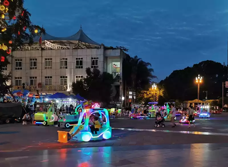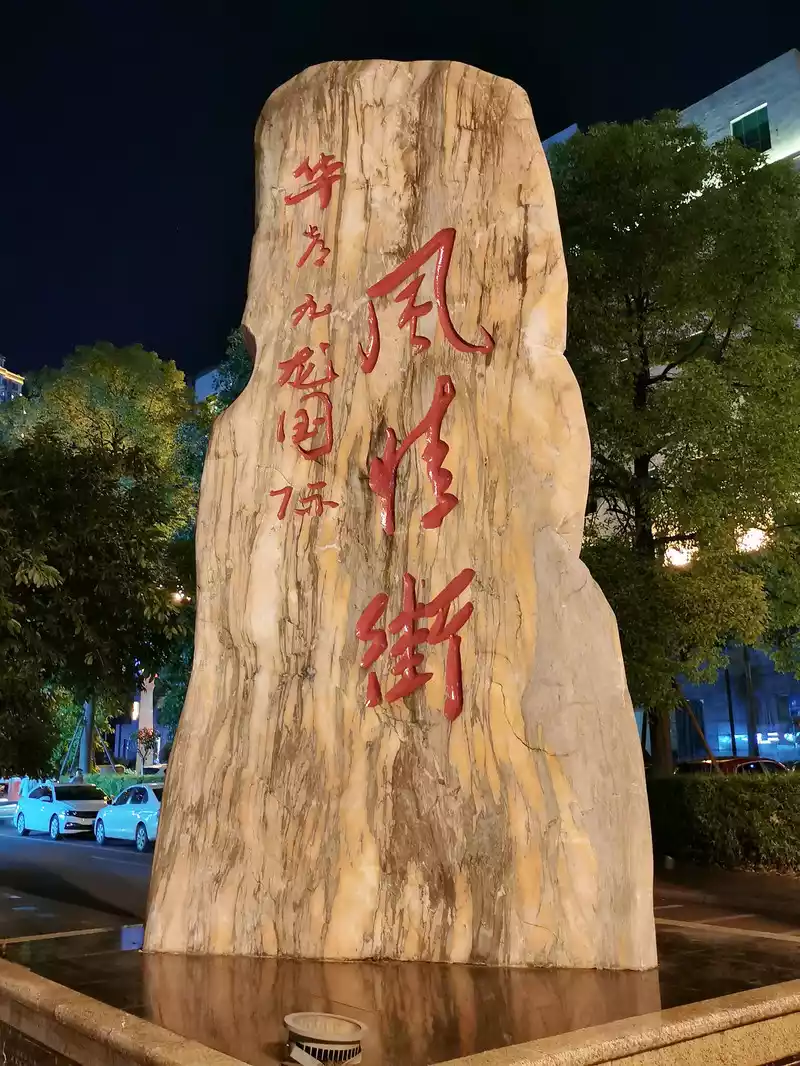 The commercial pedestrian street on the left side of the main road is lined with cart lanes and electric lanes. When I was walking around the pedestrian street, I found that the shops were still brightly lit at eight or nine o'clock in the evening, no less than the bustling night market in Chengdu.