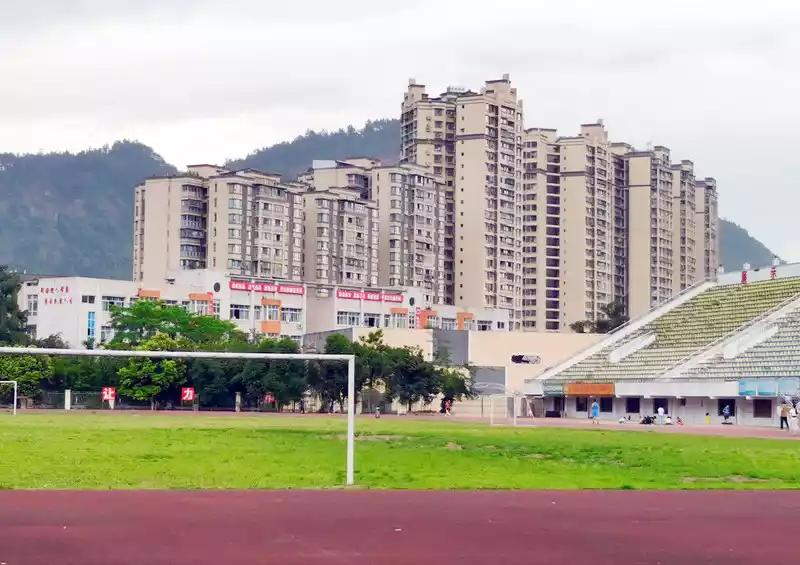 There is a stadium not far to the west, behind the building in the distance, there are mountains, there is a river in front of the mountain, I heard that there is a "Bishui Danxia" park there, you can go to see it in your spare time. From these pictures outside the window, you can see the gentle area of Muchuan County in the middle of the hillside.