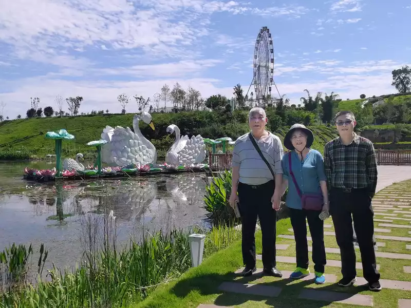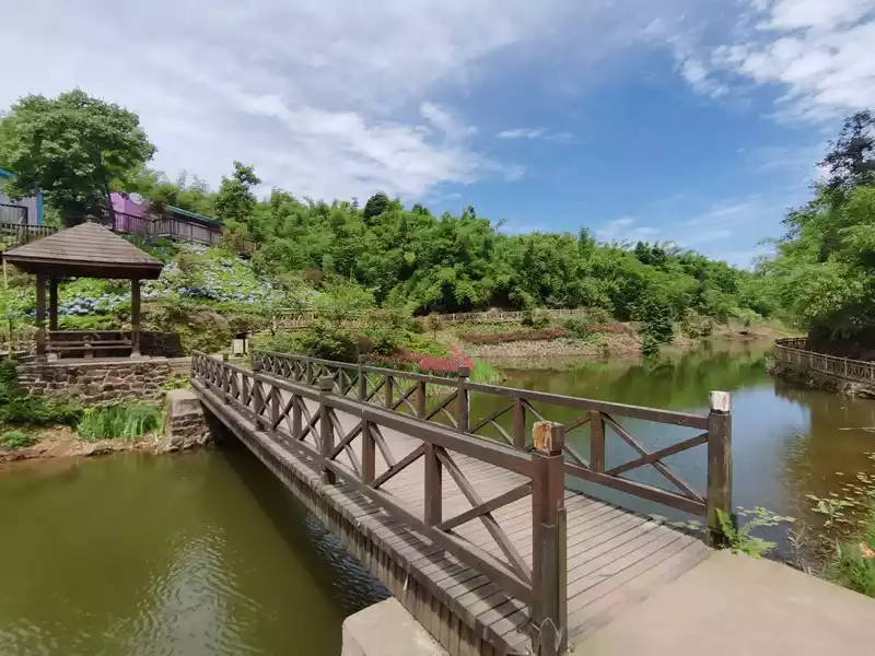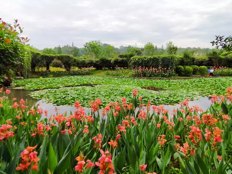 After breakfast, we went to Wetland Park and Taoyuan Mountain Residence together. The wetland park is not small, and the flowers are full of flowers.