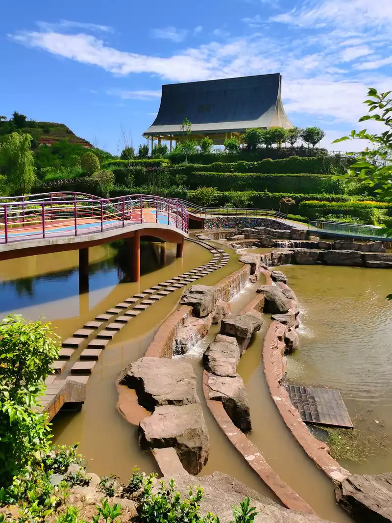 There are usually two small culverts to release water in, most of which are in the pool, and the left side is a rafting channel, and there is also a small water.