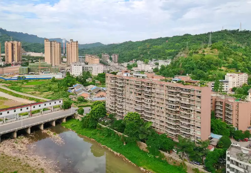 Pushing open the window, the beautiful scenery of Muchuan appeared in front of me, which immediately caught my eye. This is the east side of the city.