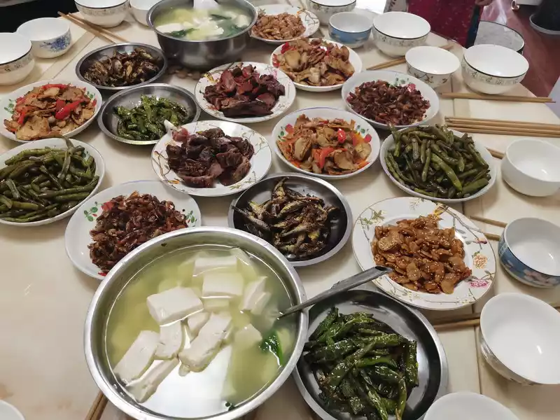 Enjoy a sumptuous dinner at a friend's house, where small fish and shrimp are all original foods that have just been salvaged from the nearby river today.