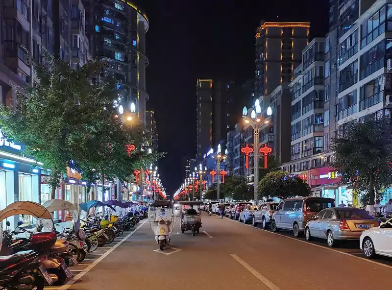After dinner, go to the night market, and soon downstairs is Muyuan Road leading to Muyuan Square, the main road of the county seat.