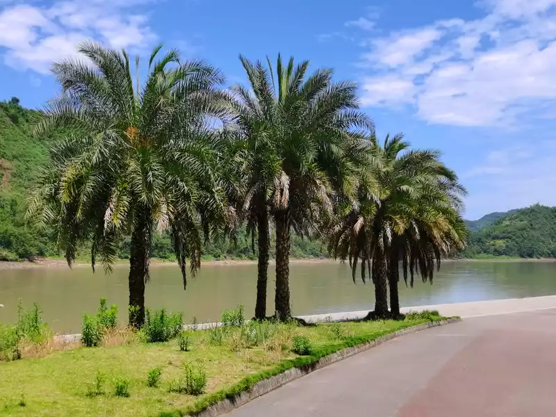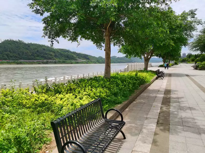 Muchuan is 100 kilometers south of Leshan and is under the jurisdiction of Leshan. The journey was long, and when I arrived at the county seat of Qianwei between Leshan and Muchuan, it happened that my friend's man's hometown was there, and he drove his parents and me from Chengdu, and got off here to rest for a while, they were all Qianwei people, so before and after satisfying our hunger, we visited the Minjiang River together and visited the World Jasmine Museum.