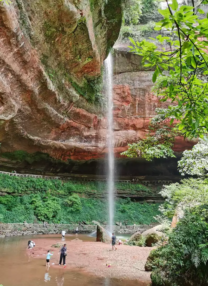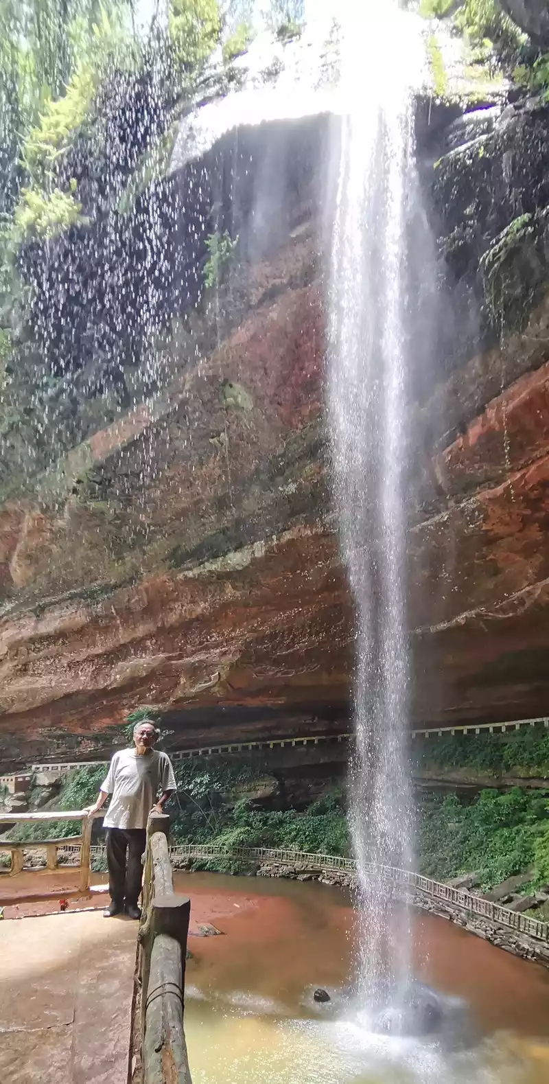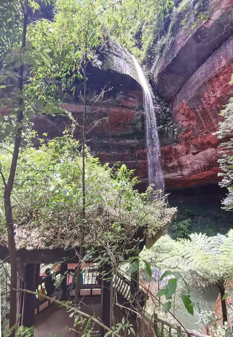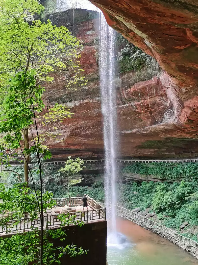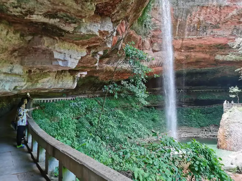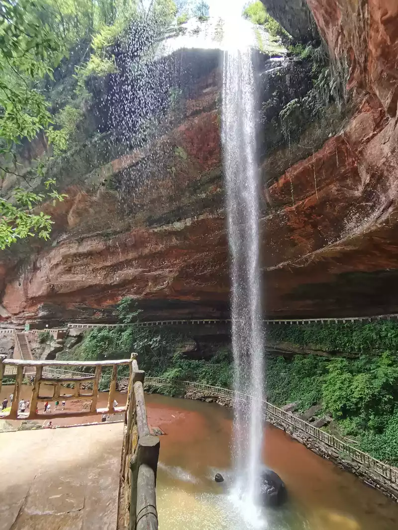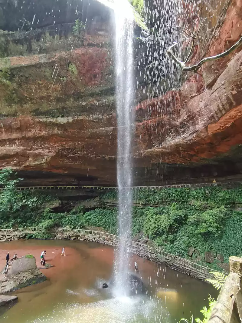 Standing here is splashed with water droplets, and you can also see the panoramic view with the waterfall.