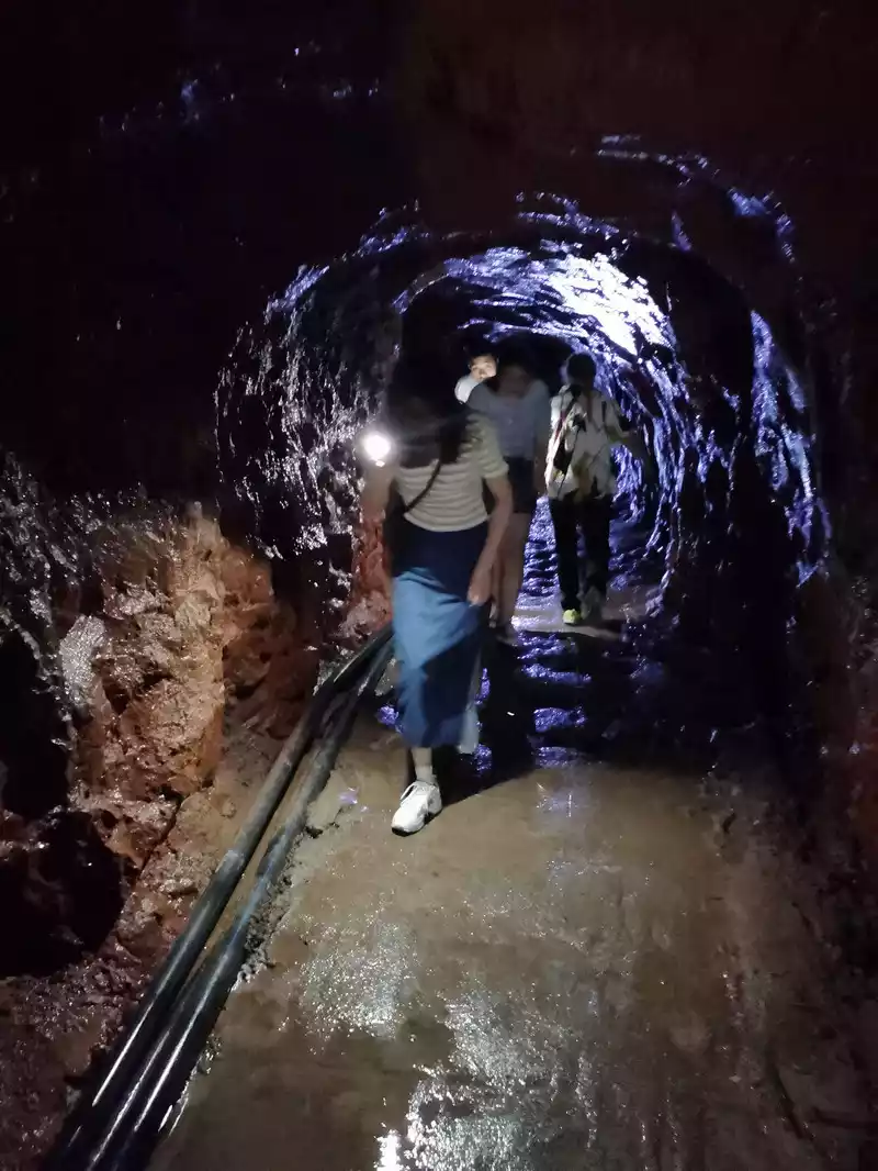 Enter from the cave entrance, light up the cave with your mobile phone, and walk 370 meters out of the other cave entrance, which is said to be the era of agricultural Dazhai, and the local people dug holes to divert water.