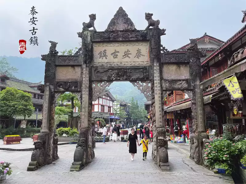The bus stopped near the mountain gate. Passing through the mountain gate and going upstream along the mountain spring, you will soon arrive at the ancient town of Tai'an at the foot of the mountain.