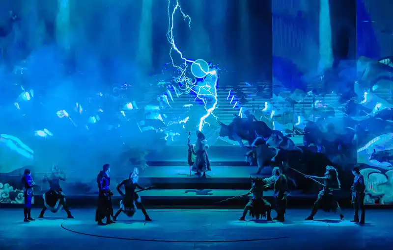 "Aden Code" puts the phenomenal adventure novel "Tibetan Code" on the stage for the first time on the plateau, creatively integrating the beautiful style of Daocheng Aden with the rich history and culture of Ganzi . The performance is directed by Liu Fangqi, the most cutting-edge pioneering theater director in China, using the latest multimedia stage technology, integrating cinema-level stage production, Marvel-level audio-visual senses, and concert-level music special effects.