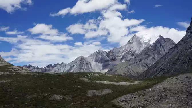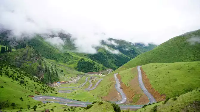 Walking through the eighteen bends of the sky road and passing through the Scissors Bend Mountain Tunnel, the canyon is winding and quiet, the top of the mountain is majestic and round, the green grass is quiet, and the yaks are in groups. Then cross the Nimagon Pass at an altitude of 4,668 meters and the Kazila Mountain Pass at 4,718 meters. As far as the eye can see, thousands of mountains and valleys, layers of mountains, one layer farther away from the other, layer lighter than the other, winding and continuous, until the edge of the sky, it is really like walking on the road of heaven.