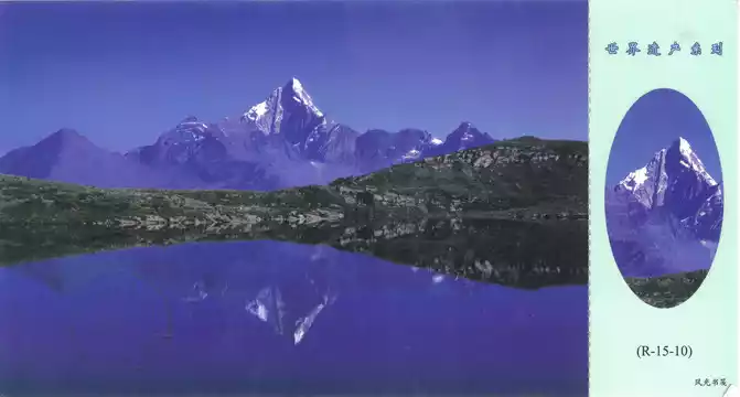 In 2007, Gongga Mountain (Figure 32) was on the national business card. The "Yellow Dragon" stamp (Figure 33) was not issued until 2009. The World Heritage Site Siguniang Mountain, known as the "Queen of Shushan" and the "Oriental Alps", and Aden, the last pure land on earth, are still hidden in the boudoir. Looking forward to more beautiful scenery in western Sichuan becoming a national business card.