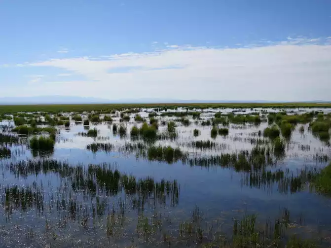 When I went to Langmu Temple in Gannan in the summer of 2015, I decided to drive to the vast Ruoerge Wetland and inadvertently went to western Sichuan. The summer flower lake is full of brilliant flowers, red, pink, yellow, and all kinds of unknown flowers, competing in the green grass. The blue lake water is dyed a faint lotus color, colorful, like clouds on the ground. The extreme view of the water and sky is the same color, the green grass and wildflowers are refreshing, and the smoke and reeds are refreshing (Figure 4).
