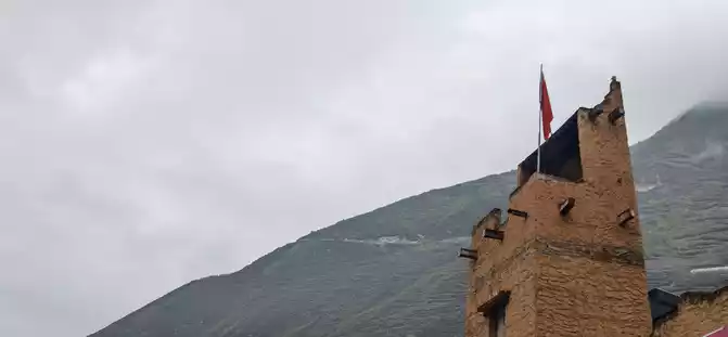 came out of Guanyin Bridge on the morning of June 30 and proceeded along National Highway 317 by the Dajinchuan River. Along the way, I saw the Songgang watchtower on the hillside, the Zhuokeji Tusi official village built on the mountain, and the Xisuo house facing the river back mountain (Figure 20). Turning from Malkang to the S210 provincial road, the road conditions are even worse, with falling rocks and landslides everywhere. Thanks to the timely cleanup of the road guards, we were able to move forward. At about 10 o'clock, we passed through the Mengbi Mountain Pass, which is the only passage from Malkang to Xiaojin County, and it is also the second snowy mountain crossed by the Chinese Workers' and Peasants' Red Army during the Long March, and there is a commemorative sculpture of "Snow Mountain Red Road" at the foot of the mountain. Shortly after passing the former site of the Lianghekou Conference, a serious landslide was encountered in Mupo Township. Four large excavators and bulldozers worked together on the site and finally dug a way for us 40 minutes later.
