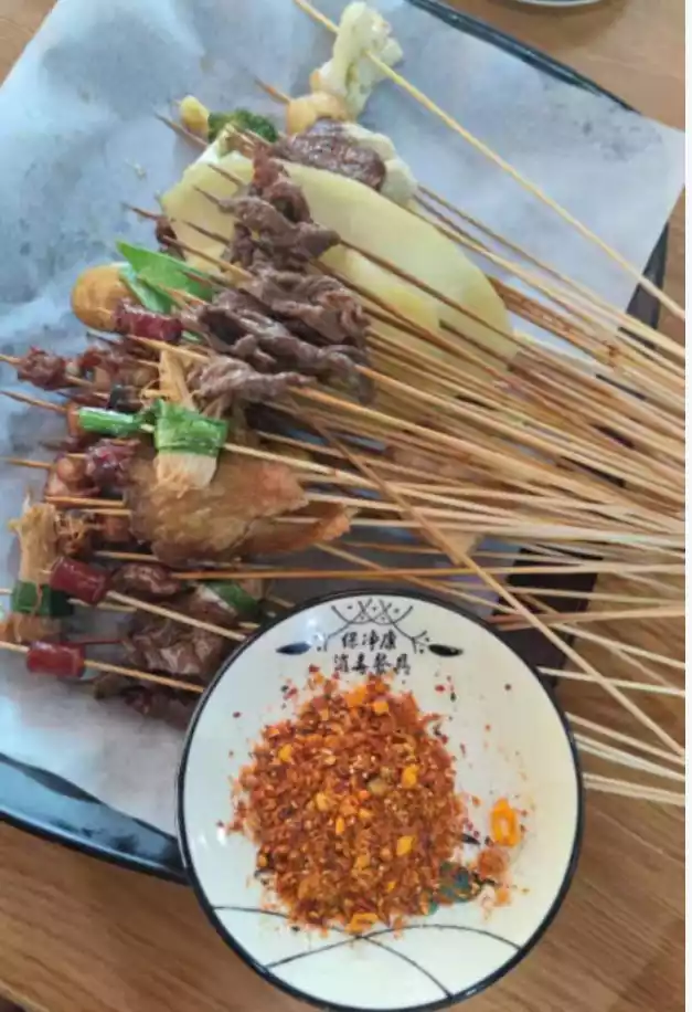 In the evening, go to the "Jiucun Roasted Brain Flower" near the Jiefang Monument to eat barbecue, "burn" to taste (corn kernels, beef, small county liver is good, chicken skin is a little dry) "Roasted Brain Flower" is the signature, heavy oil and spicy, people with heavy mouths will like it, the rest depends on their own preferences, it varies from person to person, this store is a chain store, and it is relatively popular, I personally think the taste is not bad, but there is no amazing feeling, and the price is not low. This store in Jiefang Monument is in the night market area, so it is not recommended to order too much, leave some stomach and try other things, but I didn't buy it, because the Ocean Department Store mentioned before, there are almost all the more famous ones here, and it is not worth waiting in line for so long.