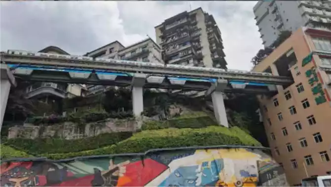 In the afternoon, I went to Liziba to visit Chongqing's most famous light rail.