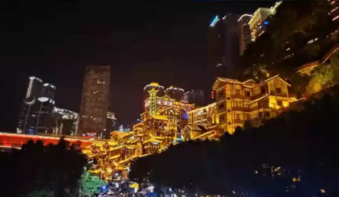 Go to Hongya Cave at night, Hongya Cave is a free scenic spot, you can enter by scanning the code, and any charged project is a scam. Walking inside, there is a feeling of "you stand on the bridge and watch the scenery, and the people watching the scenery look at you under the bridge", because the night view of Hongya Cave is to be seen on the road facing the scenic spot, and the scenic spot sells all kinds of snacks (don't buy it, it's hard to eat), as well as restaurants, and also sells some gadgets.