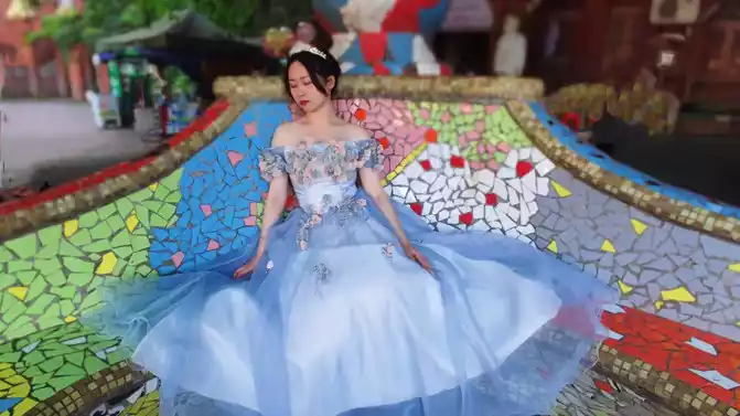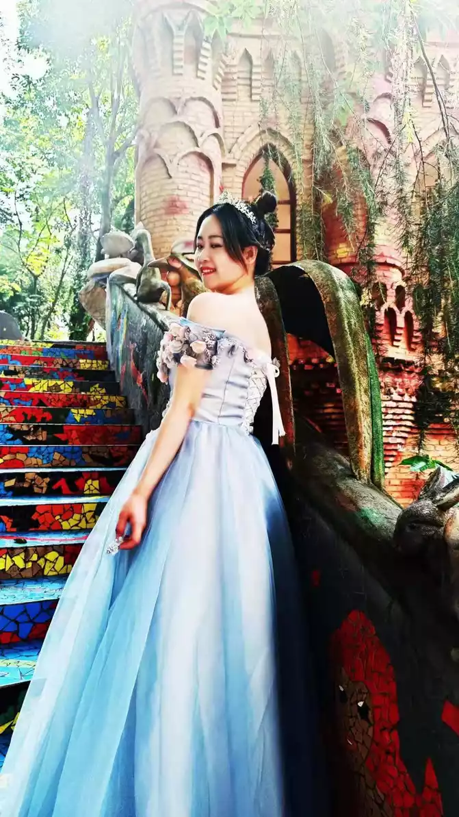 In the afternoon, I went to what I think is the most worthwhile attraction in Chongqing, "Watson Garden Golden Cake Kingdom", there are large and small castles here, but whether it is from taking pictures or from my own play experience, I have to rent a princess dress to feel it, just like I really walk in the castle like a princess, I think this is every girl's dream. Enter the scenic spot and walk along the road, about 100 meters away there is a rental of clothes, and it is also the first to rent clothes in the scenic area, remember to rent it at his house, his clothes are clean and there are many types, a body is 50 yuan, regardless of time, there will be matching headdresses, but it does not include makeup, nor does it include photography, so you have to put on your own makeup. Further inside, there are rented clothes + taking pictures, but they are more pitted, and the photos are not good, and as long as they are photographed, whether you want them or not, you will have to charge, so if your companions have good photography skills, you can take pictures with each other.