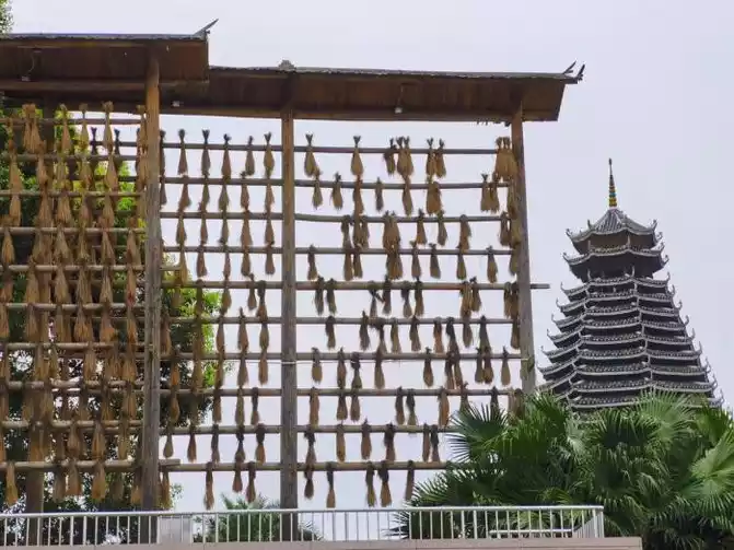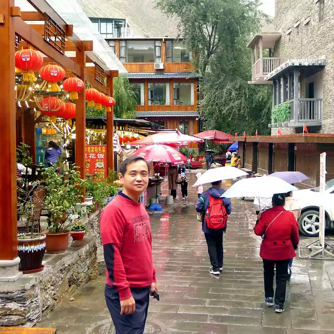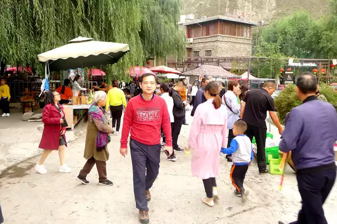 The new area is located on a large flat area next to the national highway, which can be entered and exited at will, without tickets, and cars can also drive directly in, which is obviously newly built for the development of tourism in recent years. The area is mainly filled with hotels, inns, restaurants and shops selling various ethnic handicrafts, and is crowded with tourists during the National Day holiday.