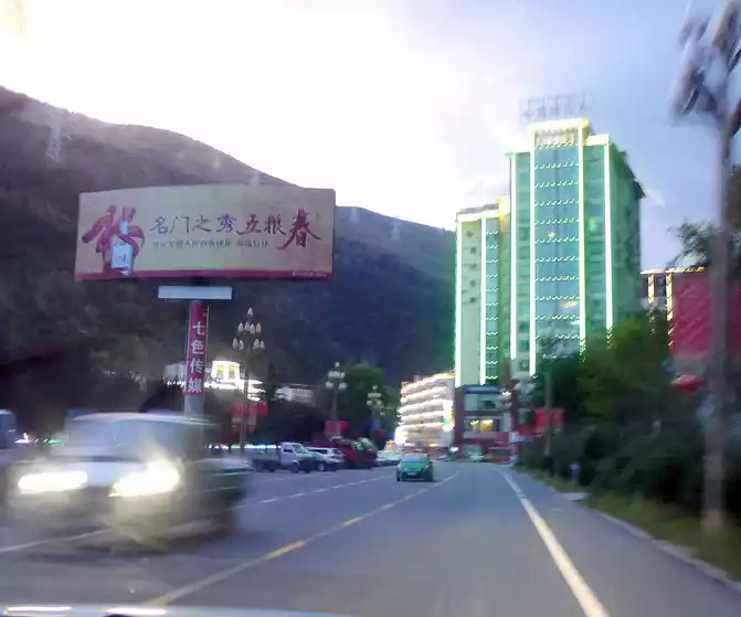 At 16:25, the bus arrived at the parking lot of the "Bipenggou Scenic Area Ticket Office" and found our own car, X.J. felt very tired because of the long "penalty stop", in order to ensure driving safety, he decided to take a nap in the car for a while, and only hit the road at 16:50. Drive out of the intersection of Bipenggou Scenic Area, turn left onto National Highway G317, the goal is "Malkang", the capital of Aba Autonomous Prefecture, where we will stay tonight. 17:22 Passing through "Gurgou", which is a beautiful town, and at 17:59 passing through Miaro Town, compared with the commercial Gurgou Town, the buildings of Miaro Town are more stylish and more exquisite. Gurgou, Miaro and Bipenggou Scenic Area are not far away, and the landscape is also very similar, and these three places can only go to one place. At 18:20, pass the "End of Village" toll station and re-enter the G4217 Rongchang Expressway (this section is also known as the Wenma Expressway), pass through the Partridge Mountain Tunnel at 18:25, and get off the highway at the "Malkang East" toll station at 18:55.