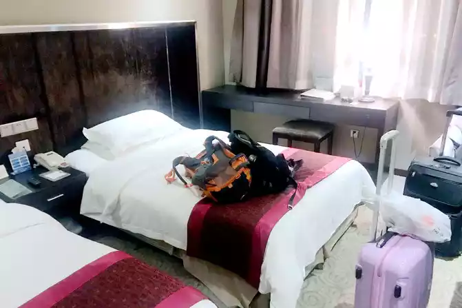 18:57 Enter the "Malkang" city, 19:03 check in the "Mansion Celebrity Hotel", the room is on the second floor of the auxiliary building, there is no elevator, the room is not big, but the facilities are okay. At about 20 o'clock, I had dinner at the "Luxi Fat Cow" next to the hotel, a hot pot set for two, the dishes were very exquisite, but there was not much beef rations, and it was arranged in the shape of a Tibetan girl presenting Hada.