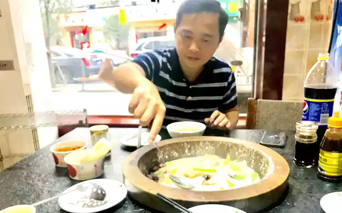 At 12:10, go around the city at the "Chengwen Qiongyi Expressway Wenjiachang Toll Station", then transfer to the "Chengguan Expressway" through the "Chengguan Expressway Chengdu Toll Station", and get off the highway at the "Dujiangyan" toll station at 12:53. However, as soon as I drove into Dujiangyan City, I saw a big screen announcing: "Today's Dujiangyan Scenic Area is full, tourists who have not made an appointment should not go to the scenic spot", so our Dujiangyan plan has failed. Unable to enter the scenic spot, X.J. decided to have lunch first, choose "spring water steam stone pot fish", after eating it felt average, he thought it was a local specialty of Dujiangyan, but after asking, he found out that it was Yunnan cuisine.