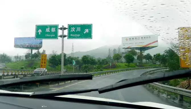 At 11:42, we drove on the road, roughly driving northwest, passing through Chengdu City, with the goal of Dujiangyan. According to my plan, we are going to stay in Dujiangyan for a while, visit, have lunch, and then go to Bipenggou, stay at Goukou tonight, and visit the ditch tomorrow morning. I went to Dujiangyan in 2001, the scenic spot is not big, and it is enough to walk for 1 hour. "Bipenggou" and X.J.'s original proposed "Mialuo" are adjacent scenic spots, but Bipenggou was developed later and more primitive, and a friend who is engaged in tourism in Sichuan suggested that we choose Bipenggou.