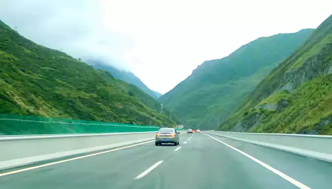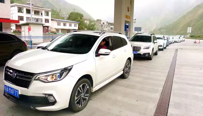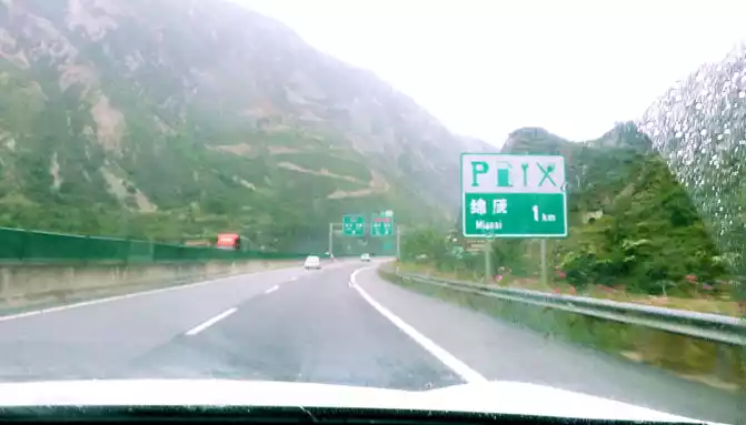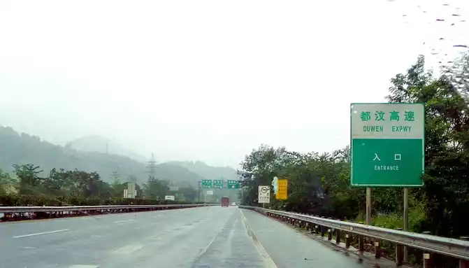 When you set off after dinner, the first task is to refuel, because there is not much gas when you pick up the car. Who knows, there are traffic jams everywhere, and several gas stations indicated by Baidu maps are difficult to reach, so I have no choice but to get on the highway first, ready to go to the service area to refuel. So, at 14:55, I got on the "Duwen Expressway" through the "Dujiangyan West" toll station and drove to Wenchuan. The Duwen Expressway starts from Dujiangyan and ends in Wenchuan, which is an important part of the G4217 Rongchang Expressway and was completed and opened to traffic at the end of 2012. In 2001, I went from Chengdu to Jiuzhaigou, and I also walked through this area, and I went from Dujiangyan to Wenchuan along the national highway G213, and I drove along the Minjiang River by car, and I felt that the scenery was very good all the way. This time I took the highway, always through the tunnel, and didn't see any scenery. The highway was also the hardest hit area by the 5.12 earthquake in 2008, and collapsed mountains could be seen everywhere.