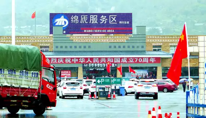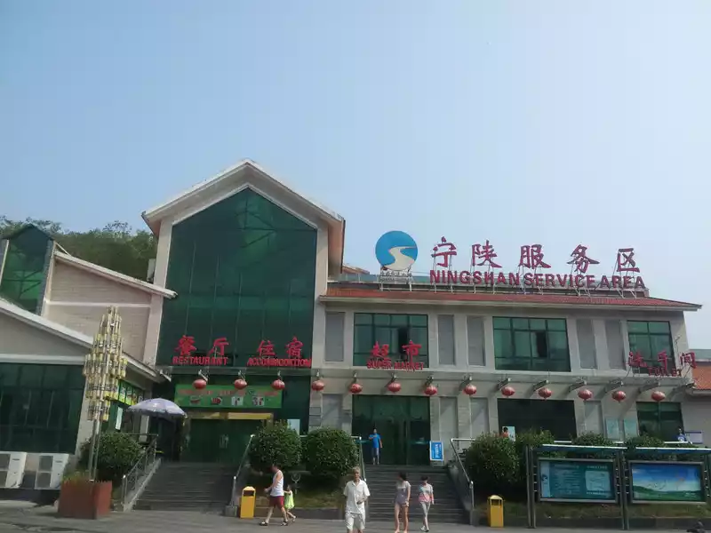 In order to refuel, I searched all the way for the service area, however, there were very few service areas on the Duwen Expressway, and it was only at 15:38 that I encountered the first "Mianqi service area", and hurriedly drove in, and there was already a long queue of cars waiting for refueling. Nearby is Dayu's hometown, and there is a "Dayu Altar" on the side of the road, which can be seen from the highway.