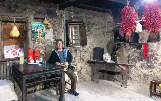 old area of Qiangzhai is located on the hillside behind the new area, and it is the real "Taoping Qiang Village". The whole ancient village is centered on tall watchtowers, the houses are connected, the corridors are connected in all directions, and the radial road network leads from the central watchtower to the exits of the village. The buildings in the village, whether they are watchtowers or residential buildings, are all made of local materials, using the flakes abundant in the surrounding mountains, and then using yellow mud as a binder to build them. The current old area of Qiangzhai has been developed into a scenic spot, the ticket is 60 yuan/person, X.J. buys a ticket, and I show my ID card (over 70 years old) to receive the "ticket discount registration form" for free entry. The registration form must be signed by the person and the remarks "safety and security" must be noted. Compared with the bustling tourists in Qiangzhai New Area (commercial area), the old area of Qiangzhai is sparsely populated and very deserted.