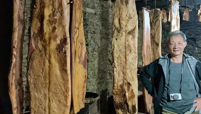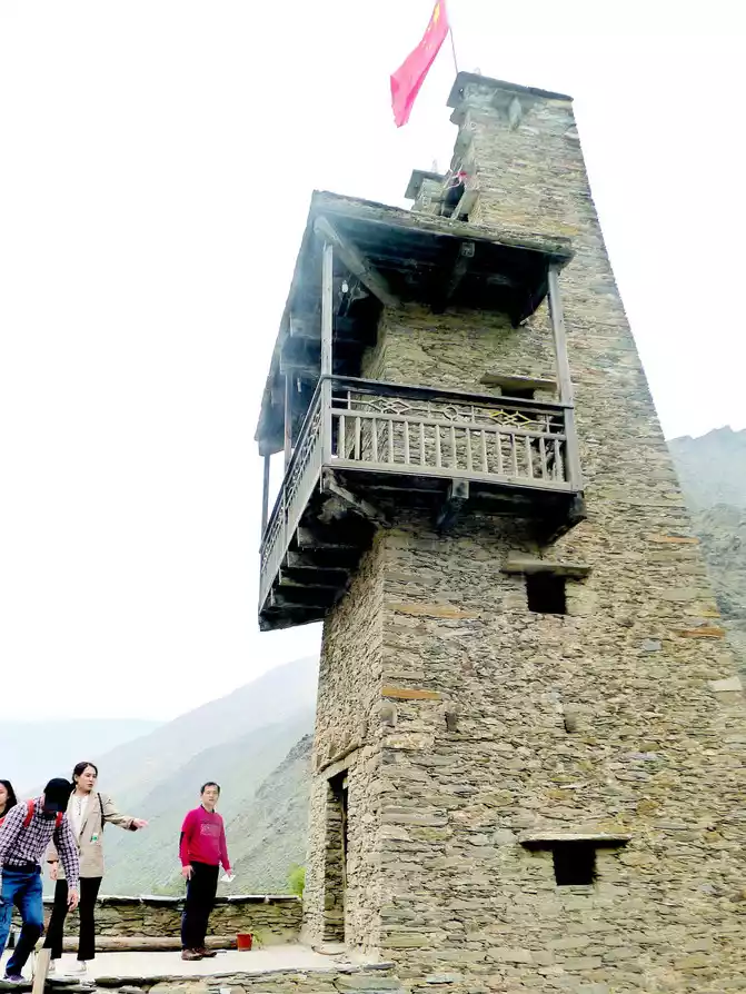 In the past, the Qiangzhai watchtower was mainly used for military defense, and the watchtower of the "Qiang King's Family" was about 30 meters high, with a total of nine floors, and each floor had shooting ports on the four walls, which was the commanding heights of the Qiang village. We climbed to the top of the building and looked out, there were dense houses at our feet, and there was another watchtower opposite, and the environment of Qiang Village was a deep canyon, surrounded by high mountains and mist, and the G4217 Rongchang Expressway and the national highway G317 meandered along the deep valley. The National Day holiday is coming to an end, and private cars eager to return east are lined up on the national highway.