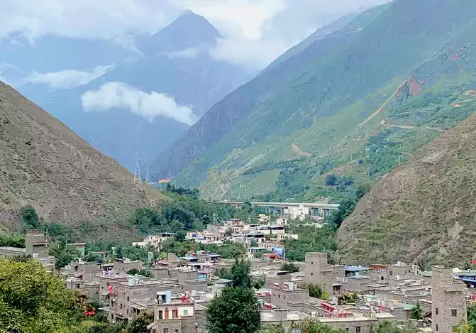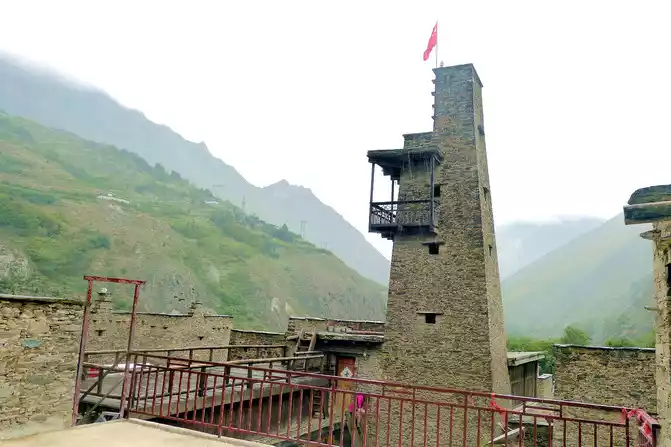 At 16:55, we drove past "Taoping Qiang Village", stopped and sightseeed, this place was not originally a project in our plan, but because the Dujiangyan plan was in vain, the time was rich, so we planned to stop here. "Taoping Qiang Village" is located in Li County, Aba Tibetan and Qiang Autonomous Prefecture, about 40 kilometers away from the county seat, and is located on the side of the road on National Highway G317. It is the only well-preserved ancient Qiang village in the world that is still inhabited today, and is known as a "living fossil" of Qiang architecture and folklore.