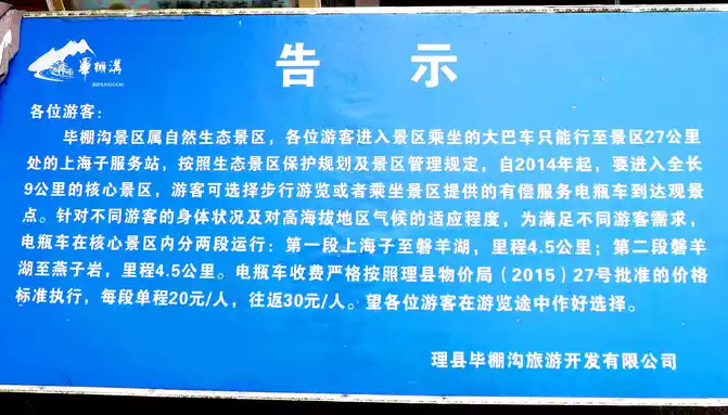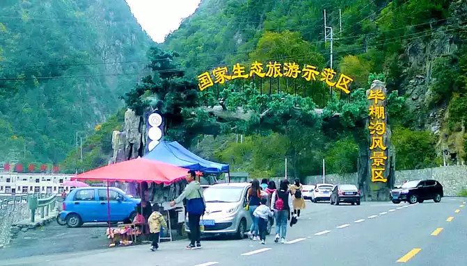 Arrive at "Shanghaizi" at 9:17, which is operated by the "Lixian Bipenggou Tourism Development Company", and the Anmin sign indicates that further forward is the core scenic spot of "Bipenggou", with a total length of 9 kilometers, tourists can walk on foot, or they can pay to take an environmentally friendly battery car to continue moving forward. The scenery in Bipenggou is beautiful, roughly divided into 6 viewing areas, including 82 natural attractions and 5 cultural attractions. However, in the entire Bipenggou, the most visited and most famous are the two scenic spots of "Panyang Lake" and "Swallow Rock".The environmentally friendly battery car is also divided into two sections: the first section is from "Shanghaizi" to "Panyang Lake", 4.5 kilometers, with a one-way fee of 20 yuan/person and a round-trip price of 30 yuan/person; The second section is from "Panyang Lake" to "Swallow Rock", which is also 4.5 kilometers, and it is also 20 yuan one way and 30 yuan round trip.