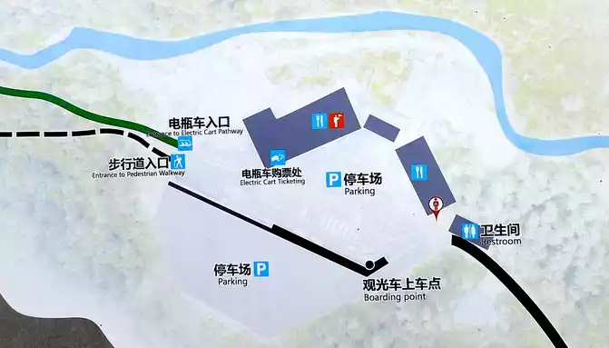 11:32 Walk to the end of the wooden plank road, which is also the starting station of the (Panyang Lake→ Swallow Rock) environmentally friendly battery car. We bought tickets, lined up, and boarded the battery car again, this time to go to Swallow Rock. The battery cars of Panyang Lake → Swallow Rock also did not stop halfway, and the 4.5-kilometer uphill road was completed in one go, reaching the parking lot of Yanziyan Scenic Area. However, the parking lot is still about 500 meters away from the real scenic spot, and you have to hike and climb after getting off the car.