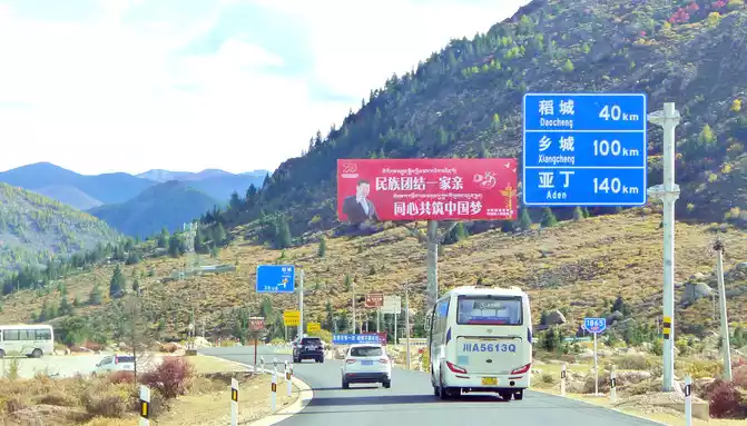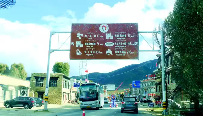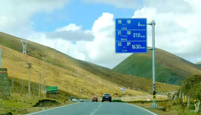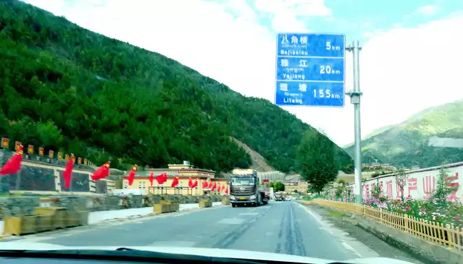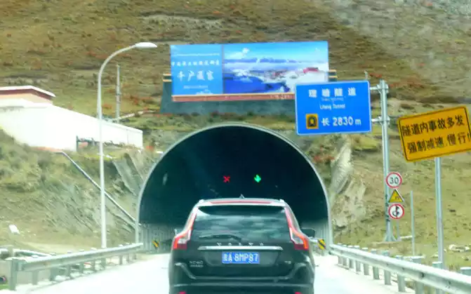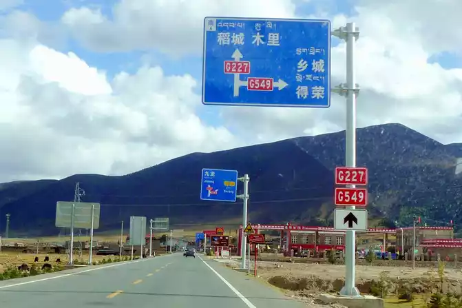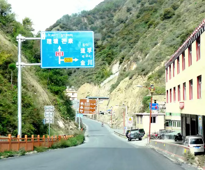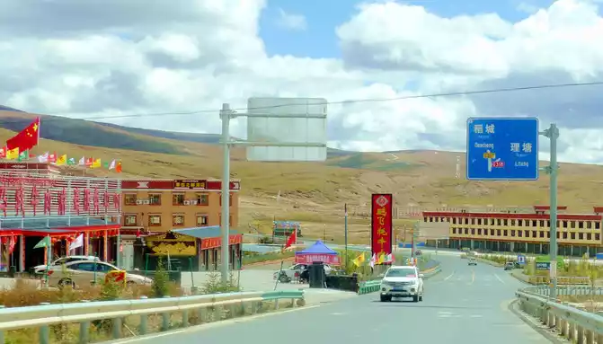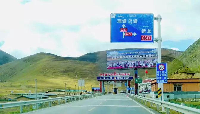 13:04 Cross the "Toloraka Mountain" through the Litang Tunnel, which was originally one of the bottleneck sections of the national highway G318, and the road over the "Toloraka Mountain" pass is very dangerous. The tunnel was built in 2015, and here it is also a "natural moat", and we cross the "Toloraka Mountain" through the tunnel, which feels like walking on a flat road. At 13:11, we arrived at the intersection into Litang County, where there is a gate in the shape of a flying crane and the Kangnan Passenger Transport Distribution Center. We originally planned to have lunch at the distribution center, but when we drove in, we found that there were only toilets and no restaurants. Helplessly, I had to continue to follow the guidance of "navigation", and instead of entering Litang County along National Highway G318, I took National Highway 227 (that is, Provincial Highway S217) south and drove directly to Daocheng, which is 150 kilometers away from Daocheng.