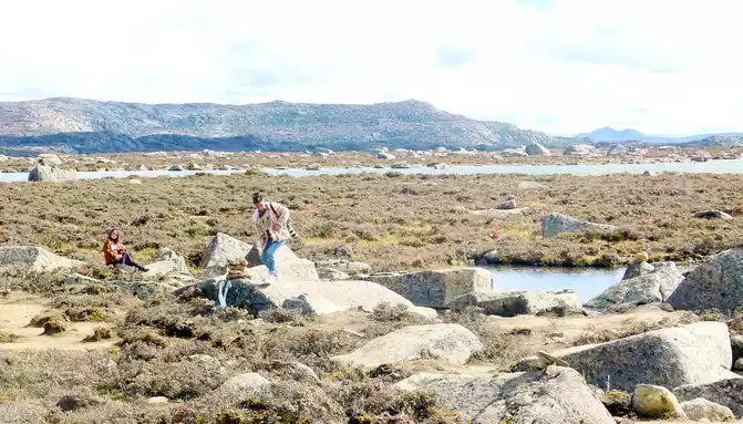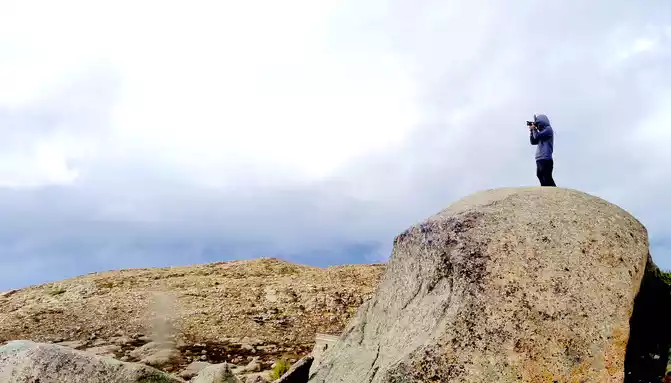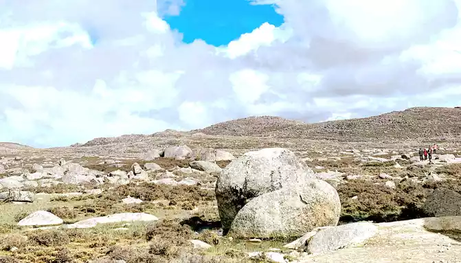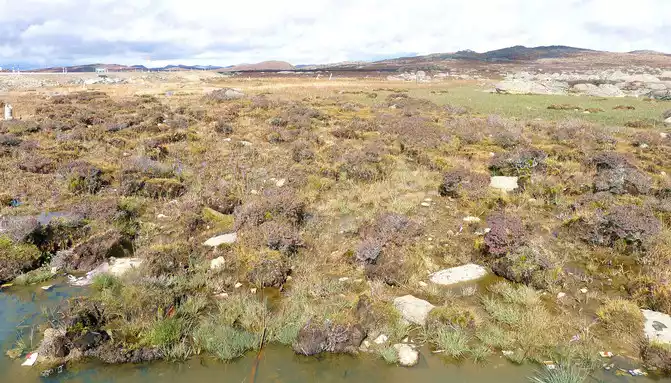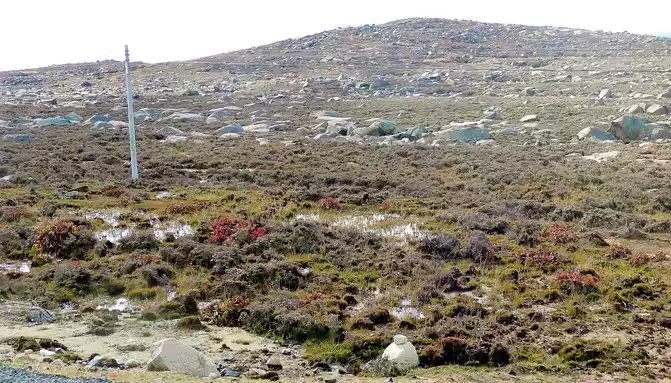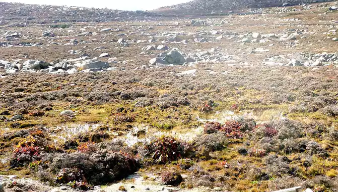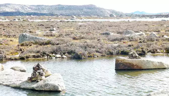 15:17 Leaving "Rabbit Mountain", the road began to go downhill, and what I saw along the way was still full of boulders, and I guessed that this should be the peak of the ancient ice sheet. At the foot of the mountain is a large alpine swamp, with a small stream meandering through it, and dotted water, and the swamp is also full of stones, which are presumed to have been cut and transported from Rabbit Mountain by ancient glaciers.