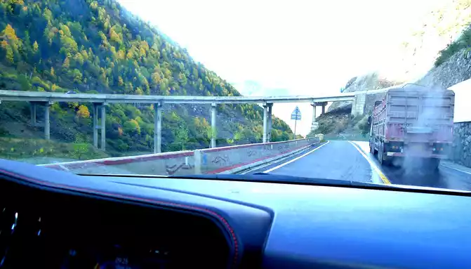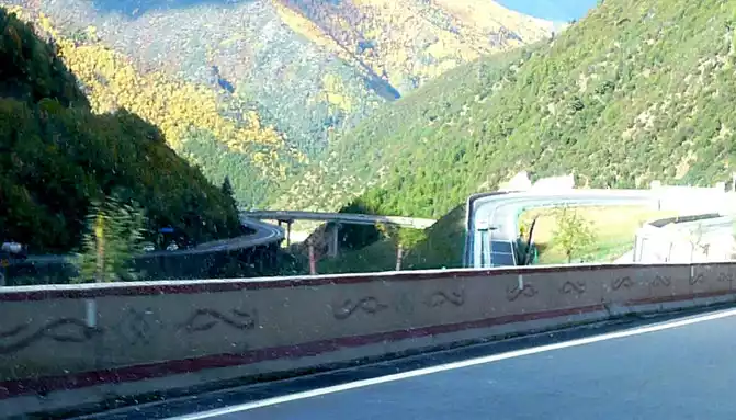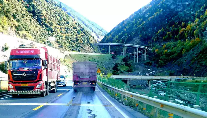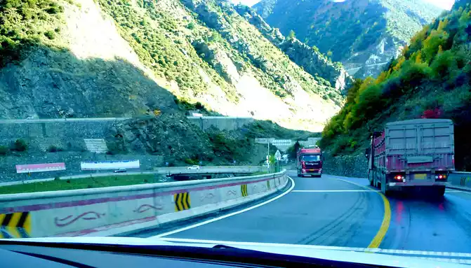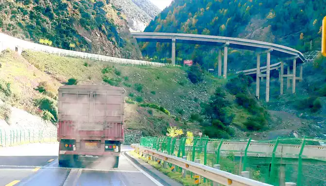 At 9:07, enter the 5682-meter-long Gao'er Temple Tunnel, about 10 minutes later, the Gao'er Temple Tunnel is about 4,000 meters above sea level, and the flat land on this side of the Xindu Bridge is 3,500 meters, so there is not much feeling of climbing the mountain from the Xindu Bridge into the tunnel, however, the situation after driving out of the tunnel is very different, the altitude of Yajiang County in front is only 2,640 meters, and the difference between the Gaoersi Tunnel is more than 1,400 meters, we just drove out of the tunnel entrance and saw the prompt of "sharp curves downhill and pay attention to slow driving", Then it rushed into a ravine, the road meandered down, the height dropped rapidly, there were many bridges and bends on the way down, and the highway used a number of high bridges across the ravine to shuttle back and forth between the two walls of the ravine, sometimes going to the left wall, sometimes going to the right wall, and gradually descending in height. Turning around and looking back while driving, the high bridges left behind us were like a staircase to the sky.