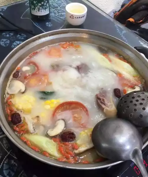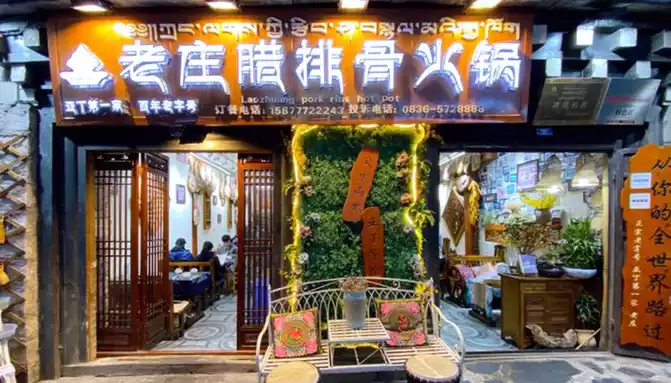 Driving into "Shangri-La Town" is already "the beginning of the lights", and we finally arrived here before dark. Staying in the "Plateau Reflection" theme hotel, the room is quite large, but the facilities are average. For dinner, choose the "Laozhuang La Pork Rib Hot Pot" restaurant. This large piece of cured pork leg is very delicious, I am very satisfied, this time I came to western Sichuan, I have the best impression of the hot pot and Bipenggou barbecue here.X.J. likes light, such as fish, but I still love meat.