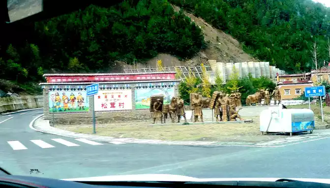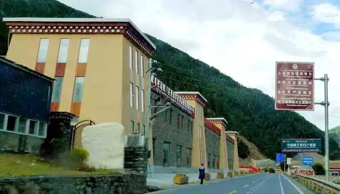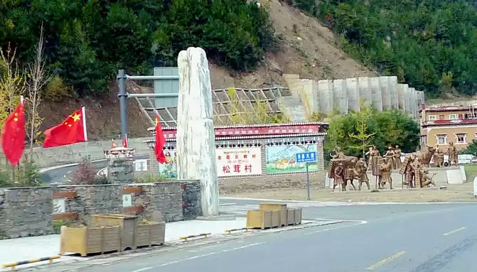 9:46 Passing through "Pamling Village", this is Bajiaolou Township, which belongs to Yajiang County, 20 kilometers away from the county seat, and is a very beautiful Tibetan village, because it is rich in matsutake mushrooms, also known as "Matsutake Village". There is a spectacular "China Yajiang Matsutake Industrial Park" in the village, a number of "hotels" on the side of the national highway, as well as sculptures of the "Tea Horse Ancient Road" and the sign of "National Civilized Village", which seems to be a tourist resort.