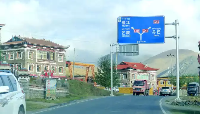The "Garden Inn" provides breakfast, steamed buns, porridge, eggs, mustard greens, fried peanuts, and departs immediately after the meal. Leaving the inn at 8:42, driving westbound on National Highway G318, entering Xinduqiao Town at 8:44, it was found last night that the "Garden Inn" had actually gone east out of the Xinduqiao boundary and was located in the territory of "Waze Township". At 8:51, we arrived at the Y-junction where G318 and G248 intersect, and we came from Danba along the national highway G248 last night, and at this moment we were going to drive along G318 to the direction of "Yajiang".