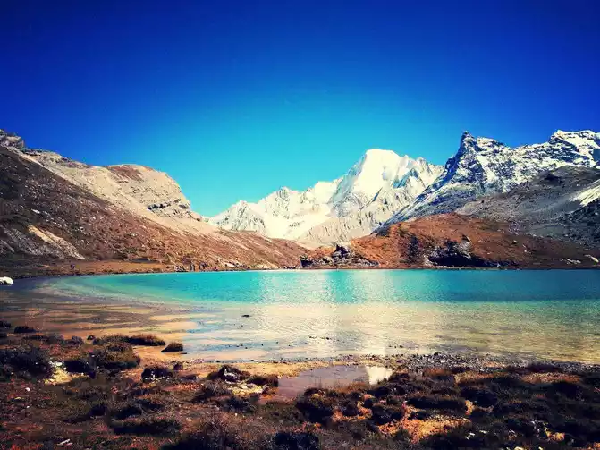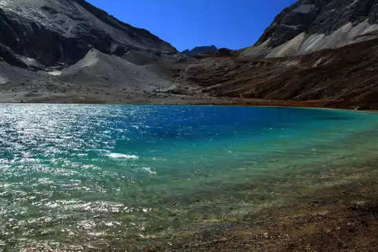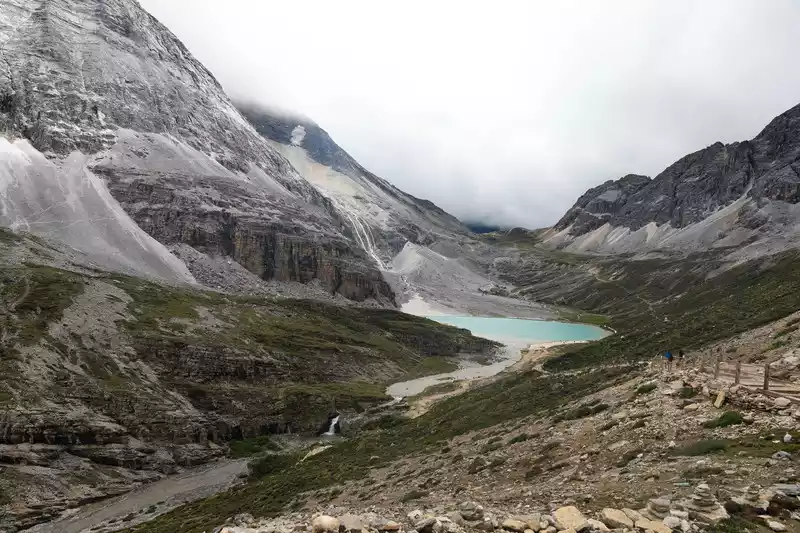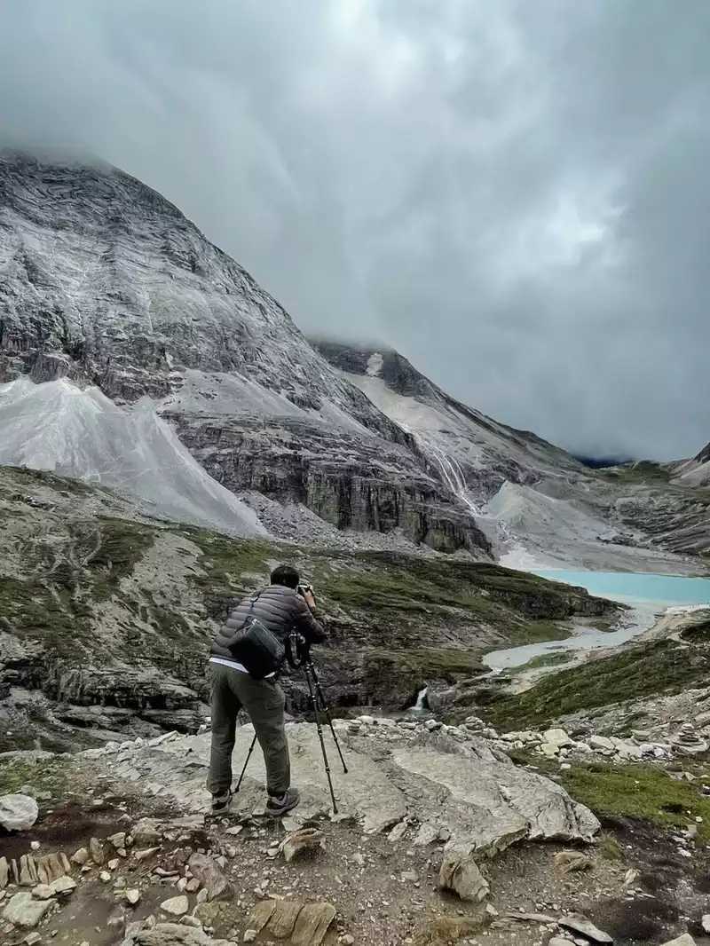Amazingly, we arrived at Milk Lake and it didn't rain ....... Sometimes, it's so interesting, although it's not as light as a sunny day, but cloudy days also have the charm of cloudy days, we hurriedly took advantage of the rain to shoot quickly, and we couldn't wait to seal the beautiful scenery in this short time into the camera. Immediately afterwards, in order to catch the only cloudy day, we did not stop too much and continued to the five-colored lake, and sure enough, the scenery there lived up to expectations, and it was still so holy and pure.
