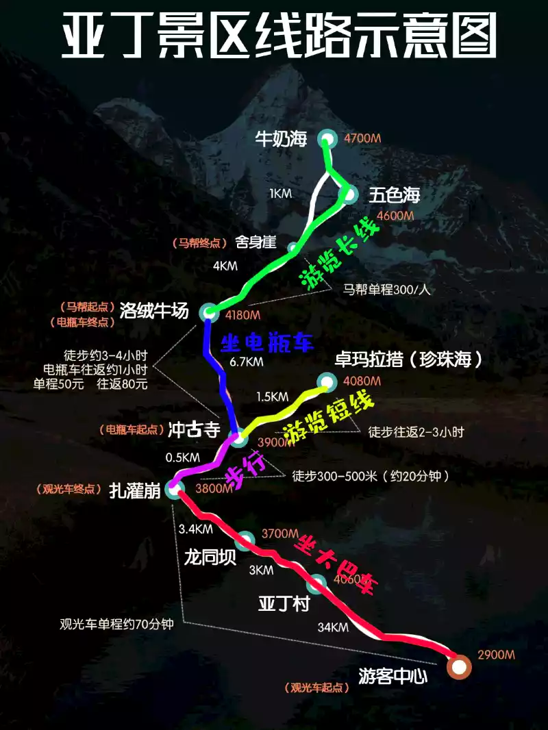 Oxygen still has to be bought.On the first day, we were still struggling with whether to climb the long line, and the next day was sunny, so let's decide whether to go long, after all, then it is coming. Daocheng Aden Scenic Area is divided into long-term and short-term, as shown in the figure: