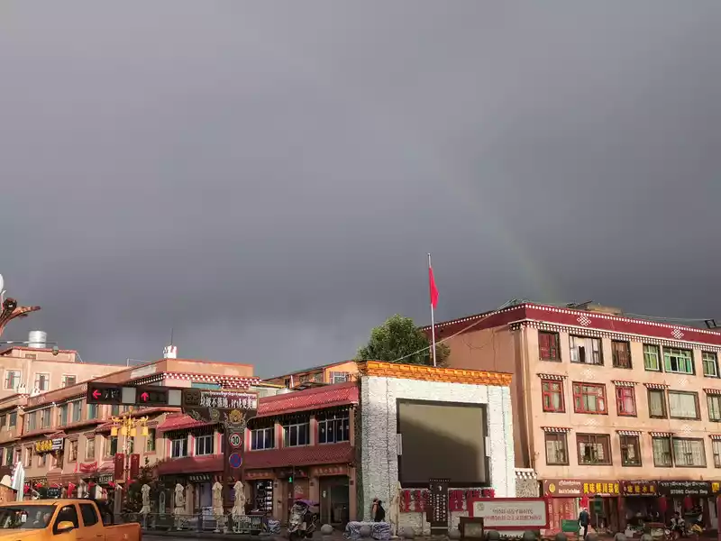 takes about 4 hours from Shangri-La Town to Litang, rain or shine all the way, and the scenery is mainly Tibetan farmhouse style, such a scenery can often be seen in the early history of Chinese photography, there is a strange excitement of wow, seeing, seeing the scene in the book. When I arrived at Litang, the weather cleared up, I saw a rainbow, and I was in a good mood for a moment, and my luck along the way was not too bad.