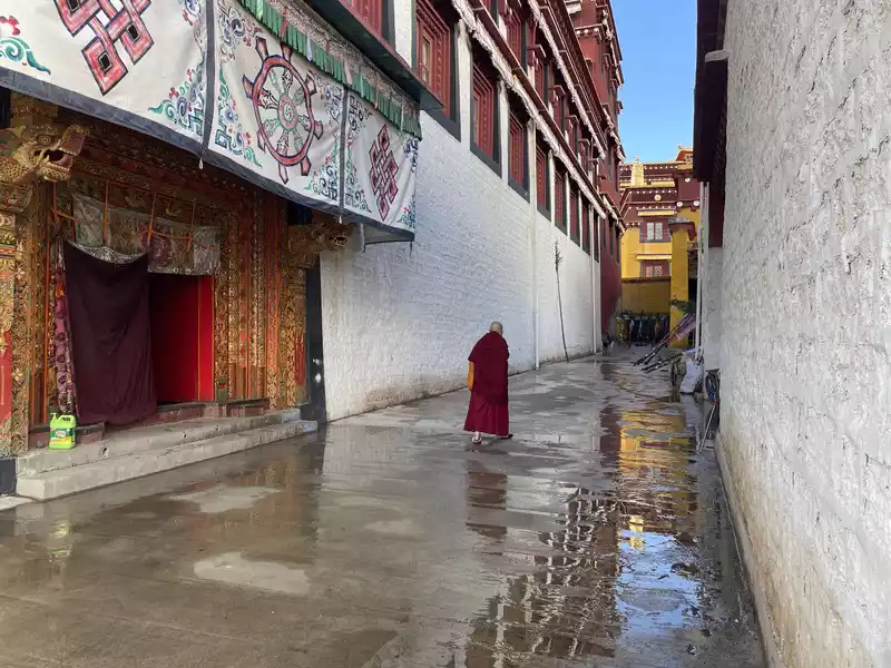 The sightseeing bus is a must-ride, as it is almost 40KM away. It takes more than 20 minutes to reach Zhaguan Beng, to reach Chonggu Temple, Chonggu Temple is built on the mountain, giving people a sense of awe, which reminds me of an episode in Tintin's Adventures, his friend crashed in the Himalayas, and was finally rescued by the temple, and the temple in the animation is the same as the feeling here.