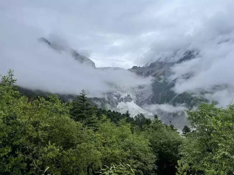 Maybe we are lucky enough to spend so much luck that when we arrive at Hailuogou, it will rain all the time, and Hailuogou Scenic Area is the same as Daocheng Aden, and you can enter the park twice. Unfortunately, the rain was heavier than the other. Take the car to Camp 4, and then take the cable car, because neither of them wanted to climb the mountain, so they bought something to sit on, and only saw a little glacier.