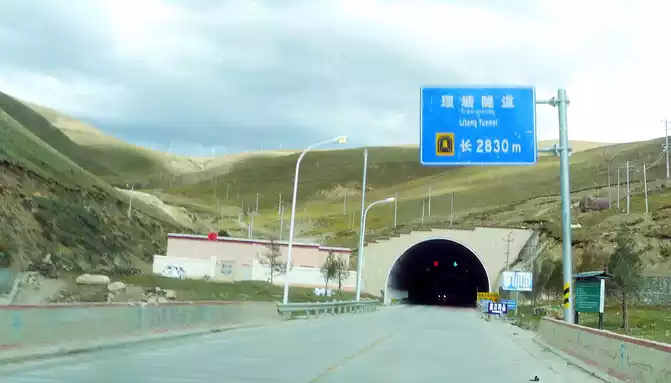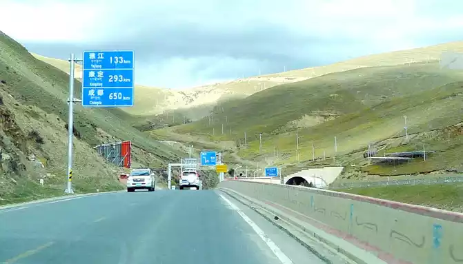 17:18 Passing by the "Xiong Zongka Observation Deck", because I stayed three days ago, I didn't stop at the moment. At 17:24, crossing the "Scissors Curved Mountain Tunnel", there is a fork in the road to the top of the mountain on the right side of the cave entrance, and before the tunnel is completed, passing vehicles must cross the top pass at an altitude of 4,659 meters. The Scissors Curved Mountain Tunnel was opened to traffic at the end of 2014, with a total length of 2,238 meters, an altitude of 4,300 meters above sea level in the direction of Litang and an altitude of 4,200 meters in the direction of Yajiang. However, perhaps because it has been opened to traffic for five years, the tunnel floor is potholed, there is no lighting in the cave, the car must turn on the headlights, the speed limit is 30 kilometers, and X.J. complains all the way that it is a "tofu dregs project".