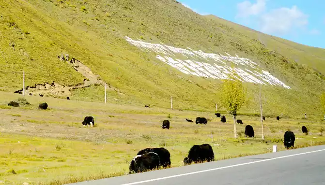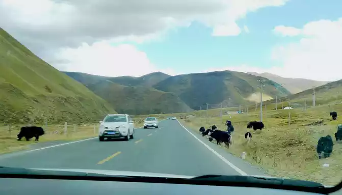 At 15:11, we arrived at the foot of the "Tolonaka" mountain, which is 133 kilometers away from Yajiang. "Tolonaka" was originally one of the peaks of the road on the Sichuan-Tibet line, and passing vehicles had to spend nearly half an hour to cross the pass, and in July 2015, the 2,830-meter-long "Litang Tunnel" was opened to traffic, and we only needed more than 4 minutes to cross this mountain. After leaving the tunnel, continue to move forward, and you can meet yaks on the side of the road from time to time, they are a tyrant on the Sichuan-Tibet line, and they can suddenly cross the road at any time, and they must slow down, give way, and pass carefully.